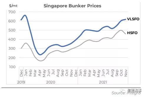 據分析師預測,目前的油價正在接近高點,未來會有一些下降的趨勢,回落到今年上半年的水平。新加坡極低硫燃料油的價格將在明年年中跌至500美元的低位,比現在每噸低100美元左右。到2022年年中,新加坡高硫燃料油價格將在380美元/噸左右。