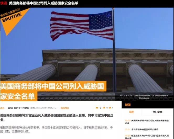 俄羅斯衛星通訊社剛剛消息稱,美國商務部工業與安全局宣布將27個實體和個人列入所謂“軍事最終用戶”(MEU)清單,其中包括12家中企。